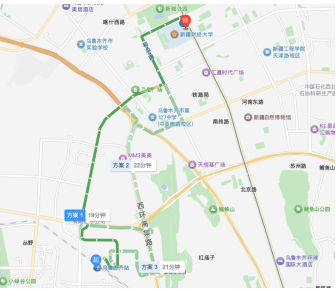 公交54路(乐民路方向)【乌鲁木齐站南广场-财经大学】高德地图路线如下(链接地址:https://surl.amap.com/1QLOxtzH7m8)