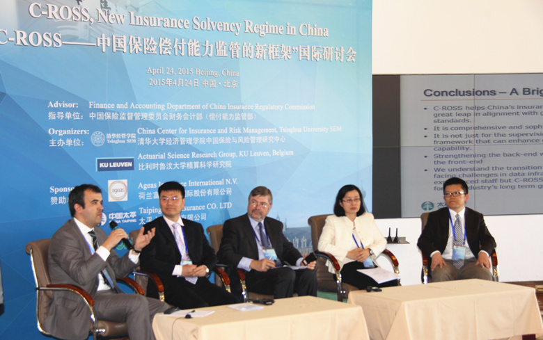 C-ROSS——中国保险偿付能力监管的新框架国际研讨会,于2015年4月24日在清华经管学院顺利召开。此次会议是在中国保监会财务会计部(偿付能力监管部)的指导下,由清华大学经济管理学院中国保险与风险管理研究中心和比利时鲁汶大学精算科学研究院联合主办。