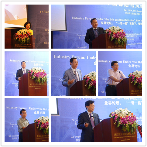 在以“一带一路”背景下,保险如何为中国企业走出去提供支持为主题的业界论坛中,来自苏黎世财产保险(中国)有限公司总经理于璐巍先生,同方全球人寿保险有限公司副总经理方秋霞女士,苏黎世财产保险(中国)有限公司首席核保王天宁先生,中信建设有限责任公司总经理助理中东区总经理何男先生分别结合各自所在企业案例在实践“走出去”战略所遇到的机遇与挑战以及应对策略,以及保险在一带一路建设中的必要性和重要性。中国保险学会会长姚庆海先生,以保险服务一带一路为主题,指出中国企业在此契机下走到国际大市场将面临更多新的风险、机遇、挑战,而保险能够有效为一带一路战略实施提供风险管理服务。中国保险监督管理委员会发展改革部发展规划处处长高大宏先生,中国出口信用保险公司国别风险研究中心综合规划处/博士后工作管理处处长王东先生也分别以中国经济的国际化与保险服务的国际化、中国企业境外投资经营面临的国家风险与保险为主题进行了大会报告。