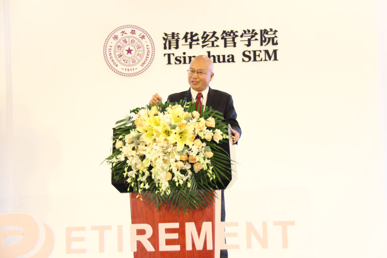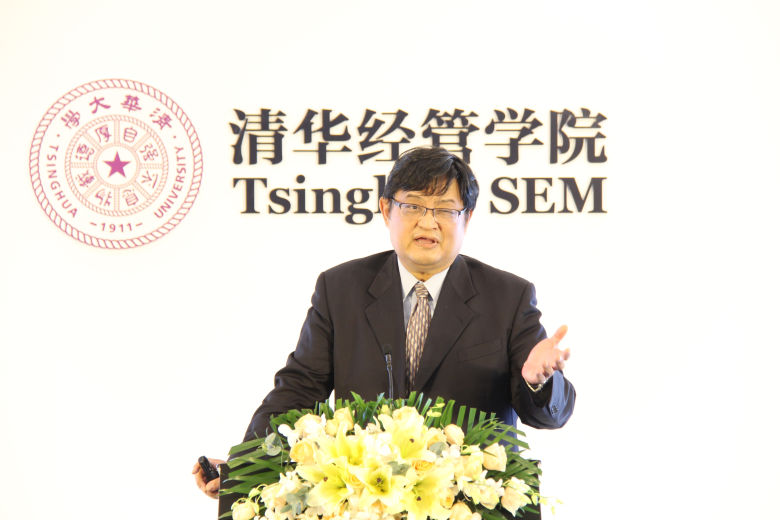 图为清华大学经济管理学院教授、中国保险与风险管理研究中心主任陈秉正演讲