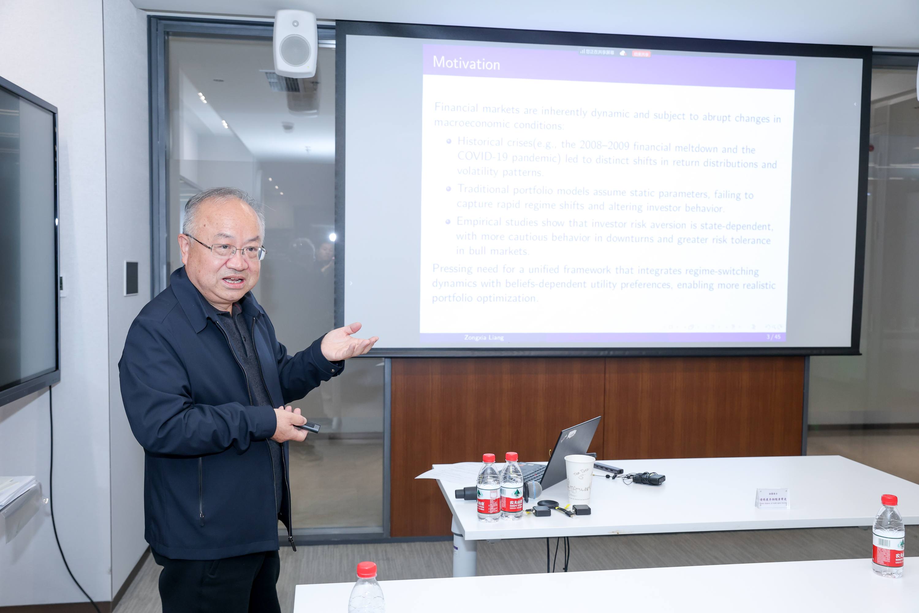 清华大学数学科学系教授梁宗霞则围绕《信念依赖效用下的均衡投资组合》展开分析,研究了在状态切换与马尔可夫链驱动的市场环境中,投资者如何在信念依赖效用下做出均衡投资决策,并给出了闭式解与数值实验结果。