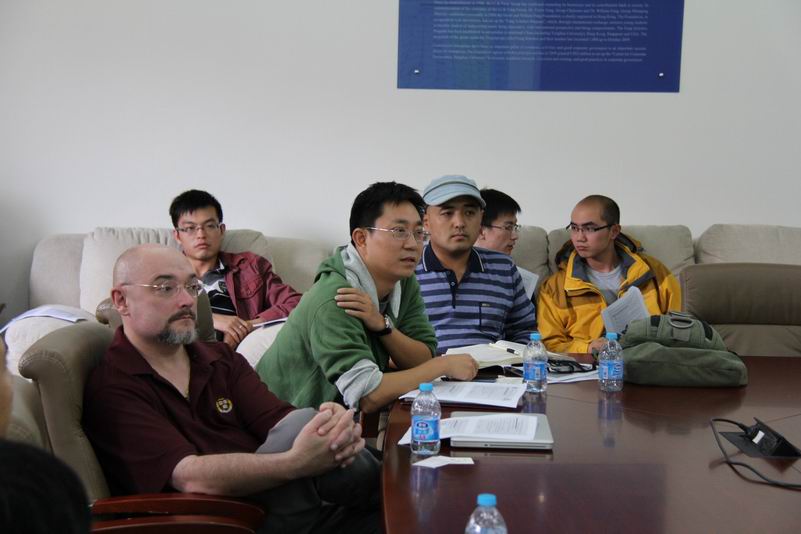 中心执行主任陈秉正教授(左一)主持讨论会并介绍嘉宾寇业富副教授(右一)