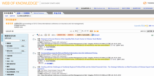 由清华大学出版社出版的《2012中国保险与风险管理国际年会论文集》(Proceedings of the 2012 China International Conference on Insurance and Risk Management)日前已被CPCI-SSH收录。论文集所含的68篇论文全部都可通过Web of Knowledge平台检索到。